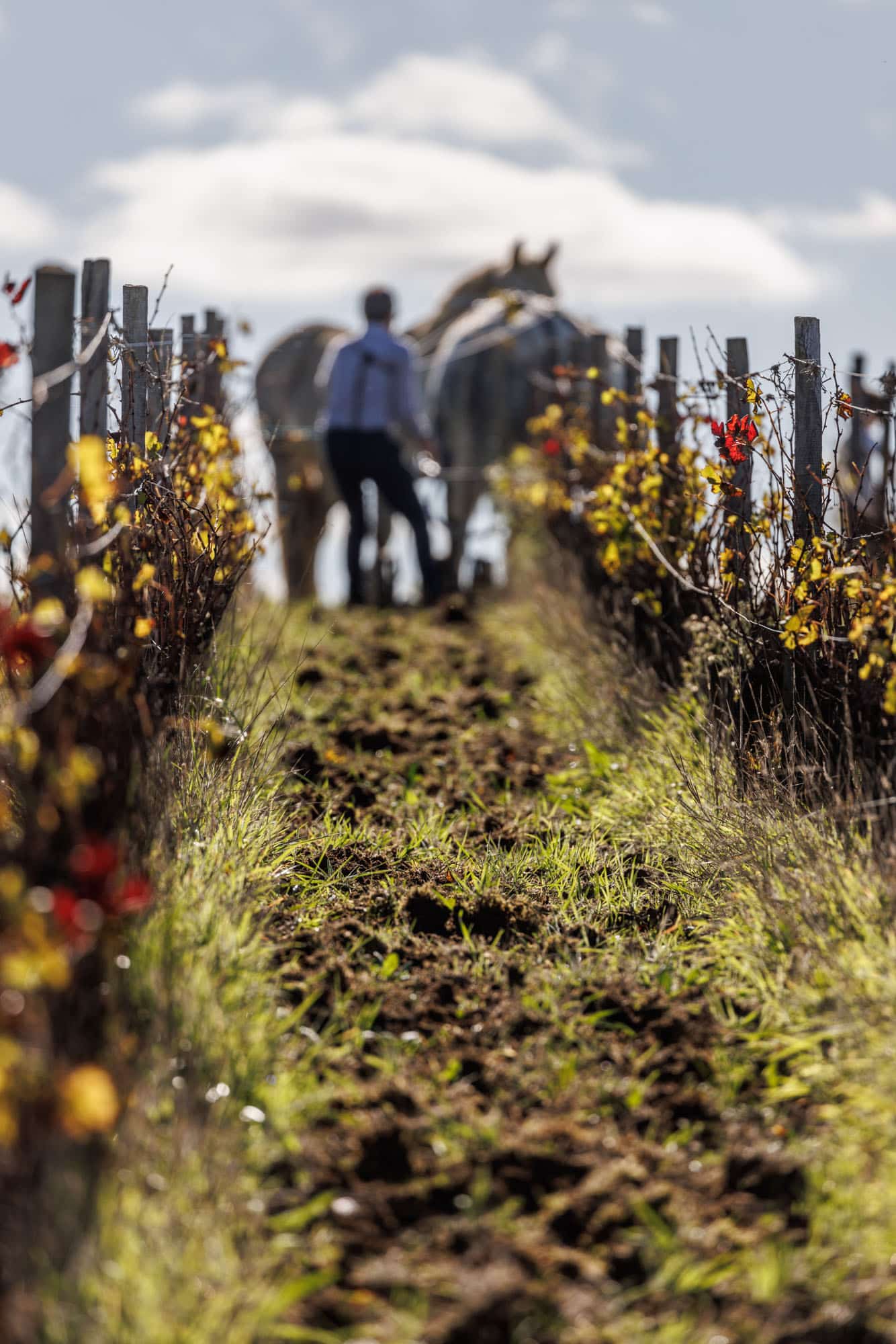 • Travail des sols à cheval de trait, vendanges manuelles et précises, interventions selon les rythmes du vivant.